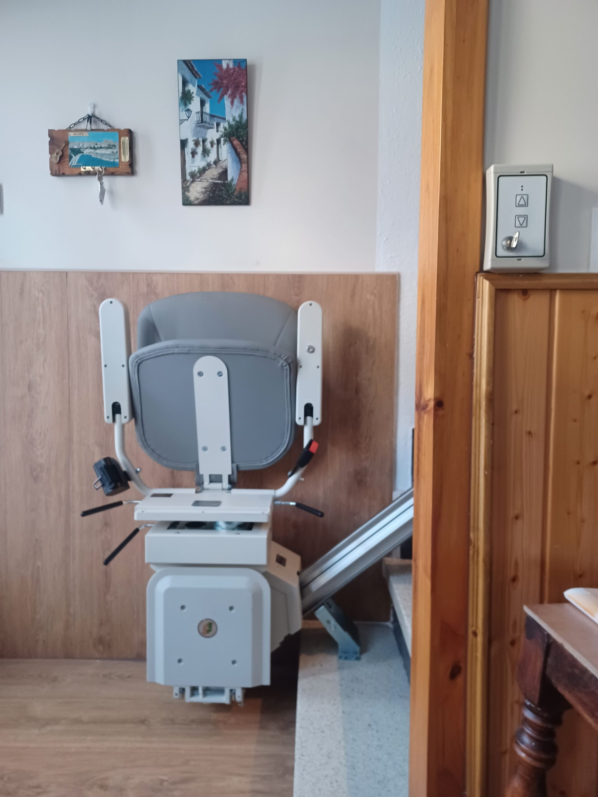 Subir y bajar escaleras ya no es un problema. Con solo presionar un botón, la silla salvaescaleras me lleva de manera segura y cómoda. Su manejo es intuitivo, la instalación fue rápida y ahora puedo salir cuando quiero sin depender de nadie